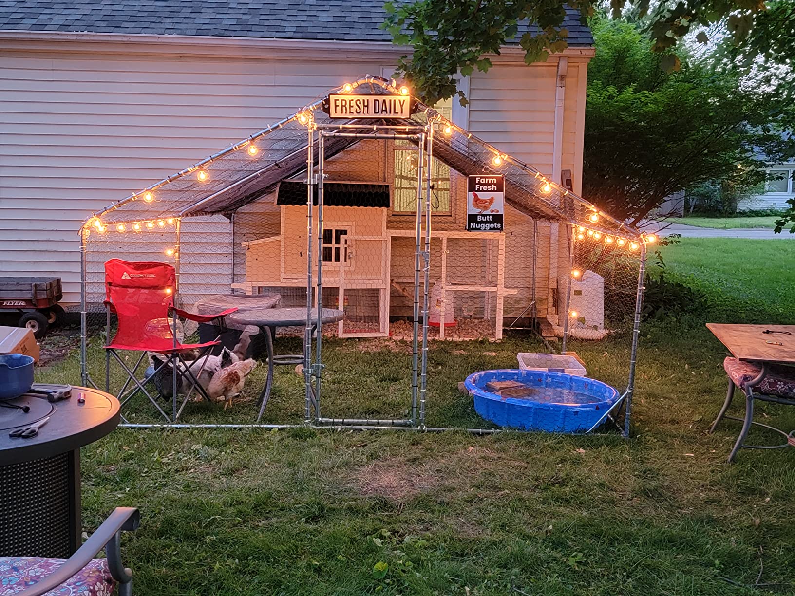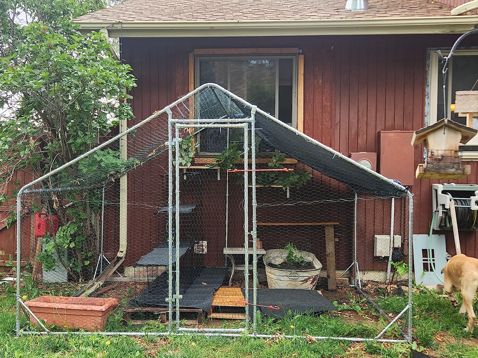 Our silkies were under threat from cooper hawks, but the pen has proven to be quite effective, successfully thwarting at least one hawk attack. It's light-duty yet sufficiently robust to deter hawks, providing peace of mind. For now, we've paused free-ranging to ensure our chickens stay alive and well.