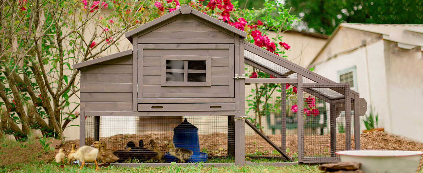 - 【Sturdy & Weather Protection】This outdoor chicken coop is is fully covered with waterproof asphalt roof and environmental painted keep the poultry hutch waterproof and your chicks will enjoy the sunshine.