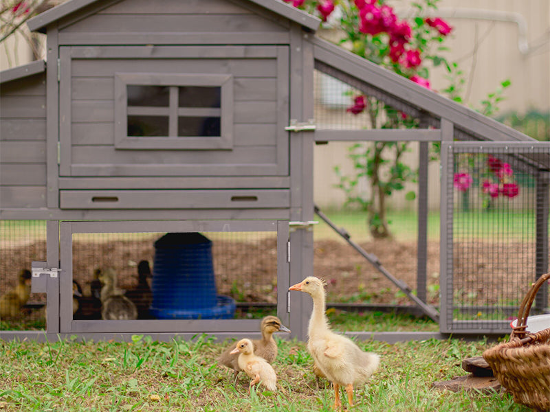 - 【Sturdy & Weather Protection】This outdoor chicken coop is is fully covered with waterproof asphalt roof and environmental painted keep the poultry hutch waterproof and your chicks will enjoy the sunshine.